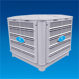 環(huán)保型空調(diào)是集通風(fēng)、降溫、防塵、除臭、調(diào)濕于一體的新型節(jié)能環(huán)保通風(fēng)降溫機(jī)組。它是一種全新的無壓縮機(jī)、無制冷劑、無銅管的環(huán)保產(chǎn)品,其冷卻核心部件是水幕蒸發(fā)器(多層波紋纖維層壓板)和1.1KW電機(jī)。工作原理是通過風(fēng)扇產(chǎn)生的壓力,迫使外界空氣通過冷卻水幕充滿房間。當(dāng)外界空氣通過冷卻水幕時(shí),會(huì)與冷卻水幕上的水膜充分接觸,空氣中的熱量會(huì)瞬間被水膜吸收,從而改變進(jìn)氣的溫度和濕度,迅速降低室內(nèi)溫度,達(dá)到通風(fēng)降溫的效果。